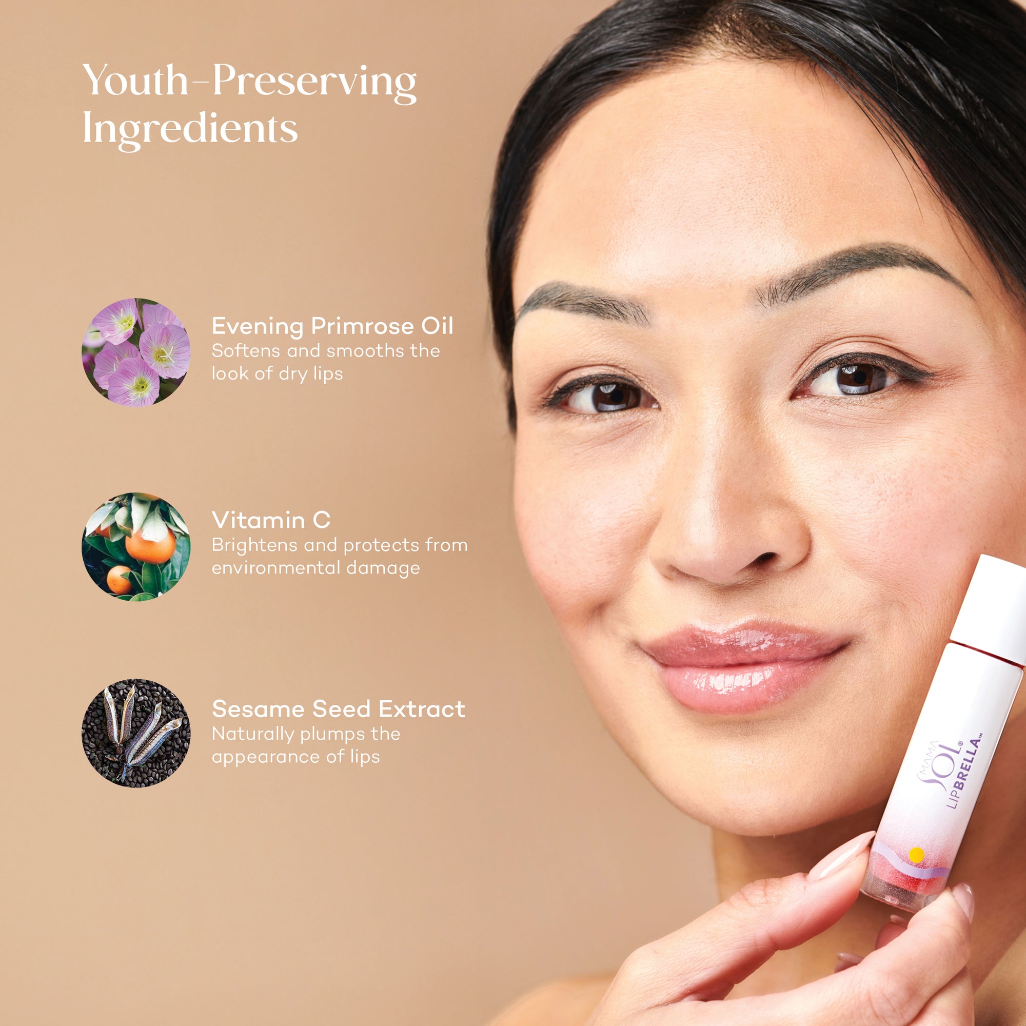 LipSOL Complex™ blends Sunflower, Sesame Oils, Vitamin C, and Vitamin E to hydrate, brighten, and smooth lips, reducing the appearance of lines for a fuller looking pout.
